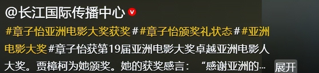 近期,她荣膺卓越亚洲电影人大奖,由贾樟柯导演亲自颁奖。